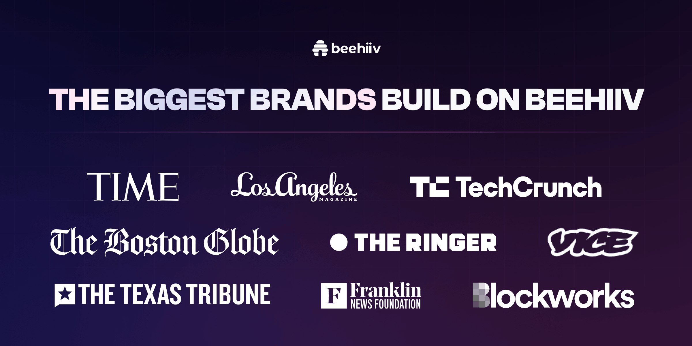 Big brands use beehiiv. But so can anyone. And that's the whole point. We used beehiiv to send you the email you're reading right now.