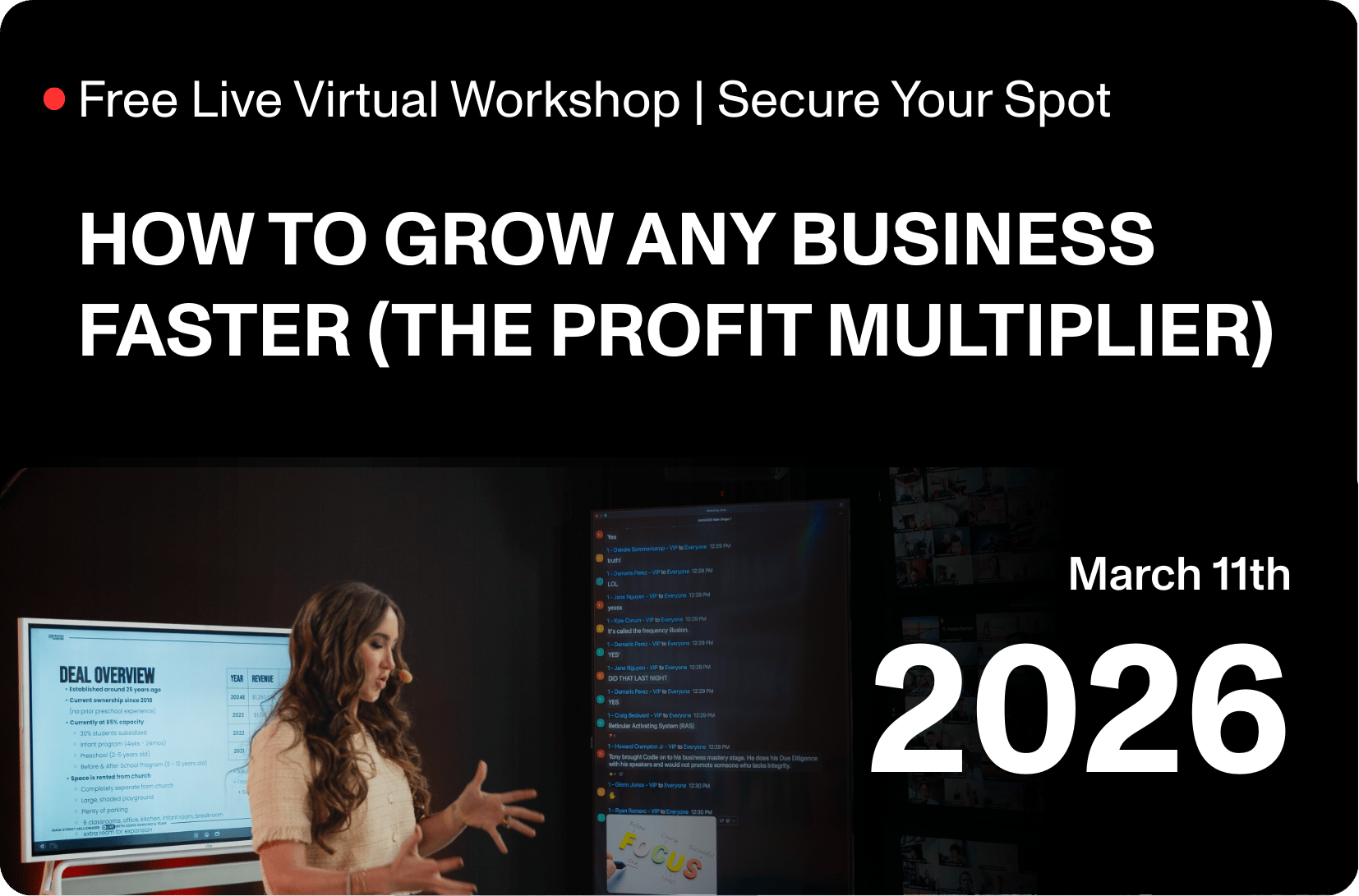 Next week, at our free business growth masterclass, we’ll share the scaling tactics we’re seeing work the best in 2026. Cool thing is you can watch live, from the comfort of your own home.