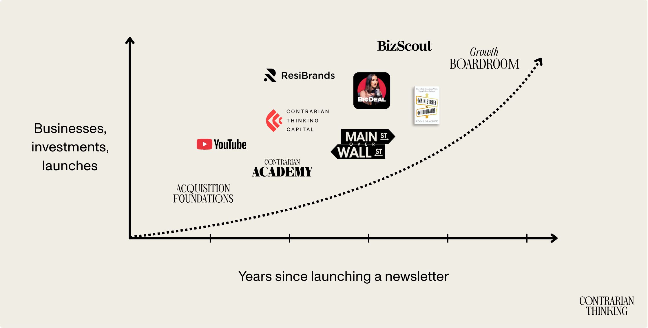 Our investments: We didn't build a VC fund and then find an audience. We built an audience and then a VC fund grew out of it. When a group of business builders trusts your thinking, deals start coming to you.